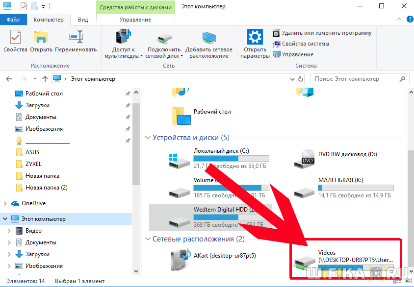 Теперь при заходе в проводнике в «Компьютер» среди прочих системных жестких дисков мы сможем видеть в разделе «Сетевое размещение» диск «Z». попасть же на него можно при условии, что компьютер, на котором этот сетевой диск-папка размещен, включен.