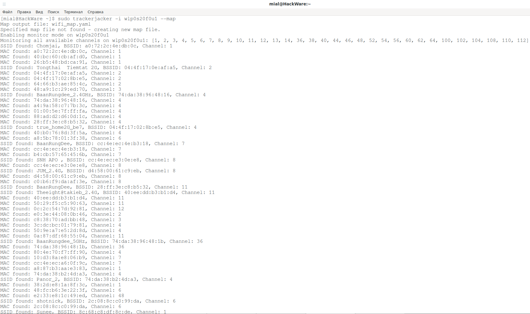 sudo trackerjacker -i wlp0s20f0u1 --map