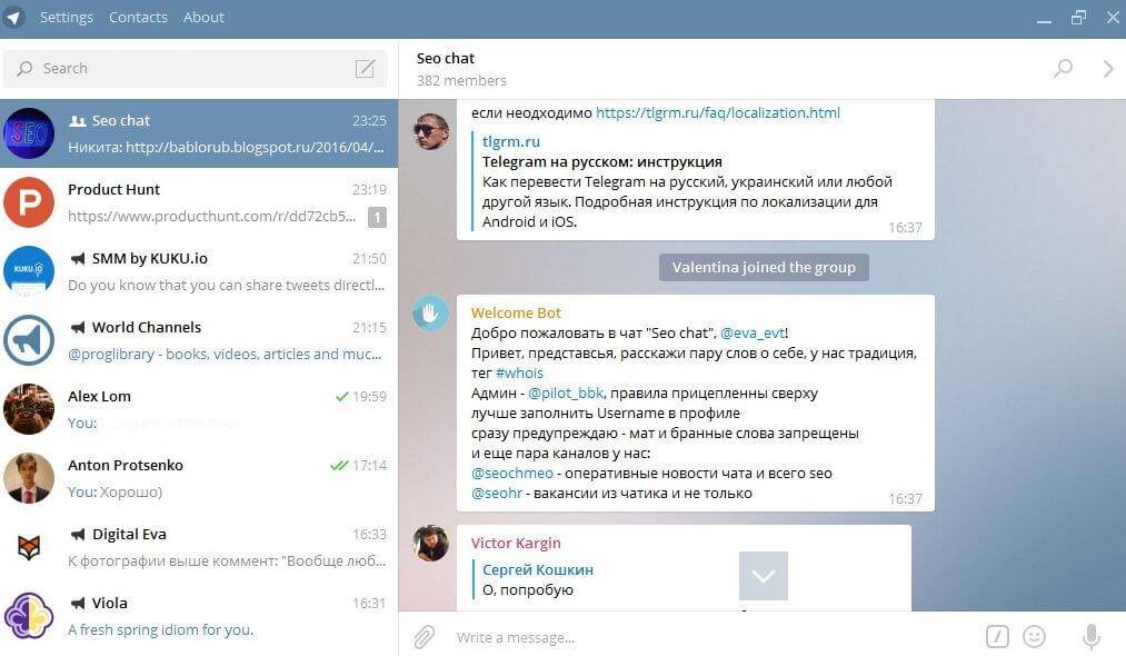 К слову, если знать, как пользоваться Telegram в телефоне, то можно сразу же понять, как пользоваться Telegram на компьютере. Принципы работы точно те же самые. Правда, в компьютерной версии недоступны секретные чаты.