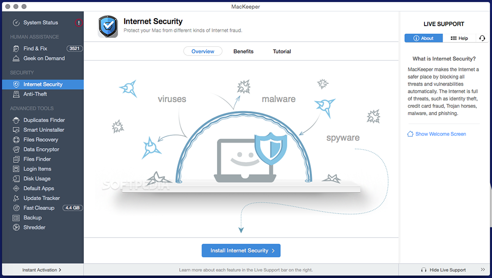 - Internet Security – защитите свой Mac от мошенничества и фишинга, вредоносных или шпионских программ, рекламного ПО, вирусов и кражи личных данных при использовании интернета.