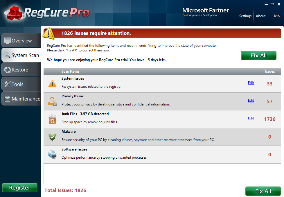 - После обнаружения ошибок исправьте их, а затем запустите индивидуальное сканирование для устранения заражения вредоносными программами, проверьте диск на наличие ошибок, исправьте недействительные записи реестра.