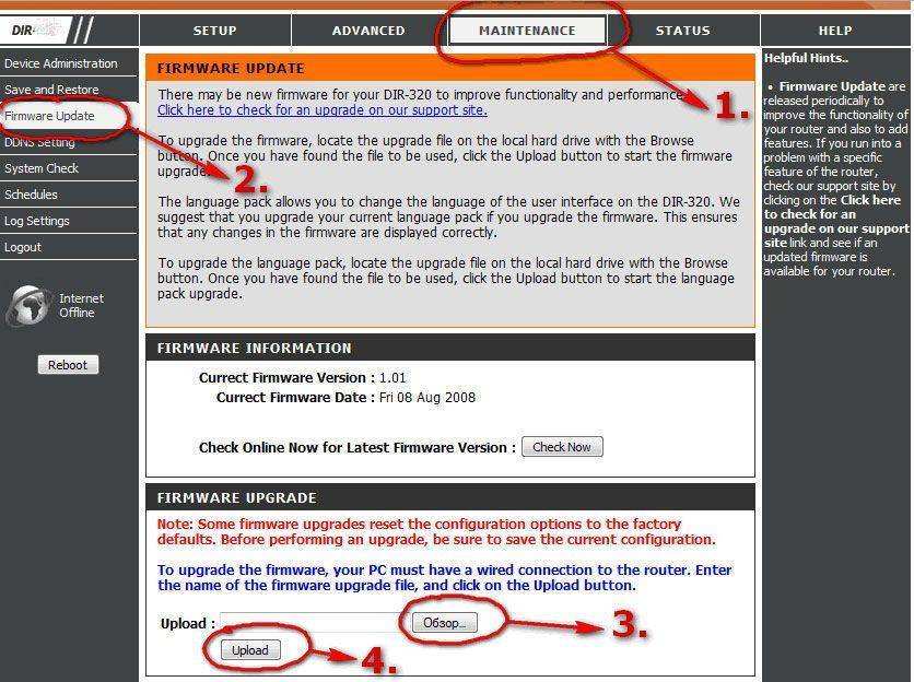 Чтобы устройство работало стабильно и обеспечивало быстрый доступ в интернет, нужно вовремя обновлять прошивку. Новые версии выходят обычно где-то раз в полгода-год. Обновление ПО у D- выглядит так: