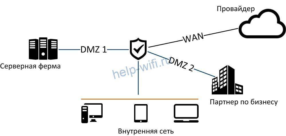DMZ состоит из одного или нескольких компьютеров либо сетевых устройств, без ограничений доступных из внутренней сети и из интернета. Потребность в таких настройках вызвана специфическими программами или службами, к которым необходим доступ внешним пользователям.