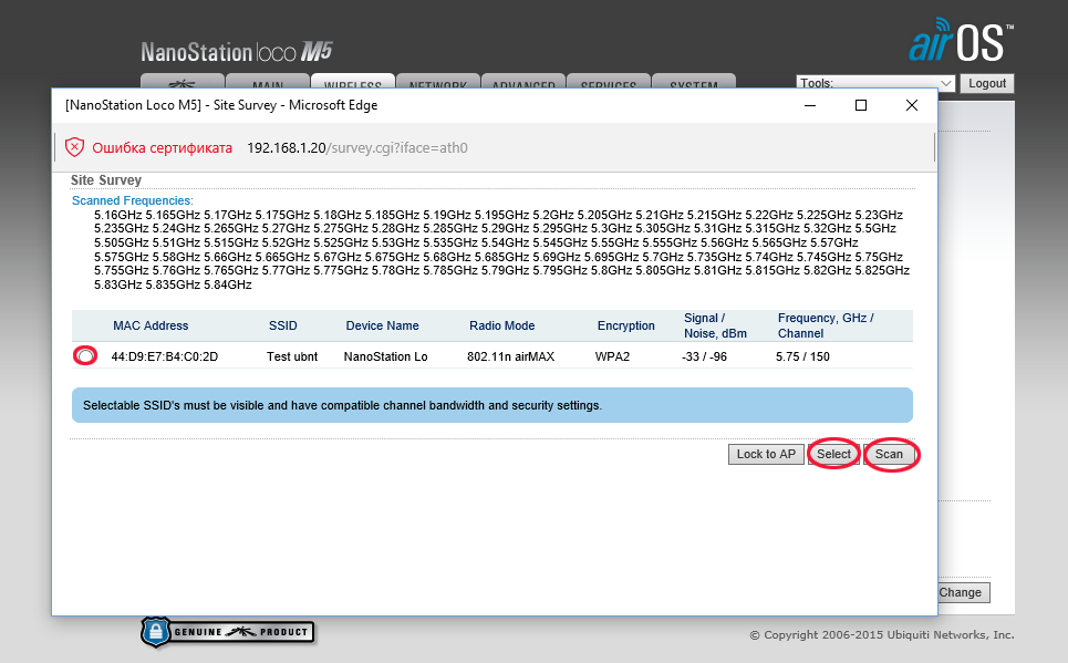Первое подключение и особенности настройки NanoSTATION Loco M5