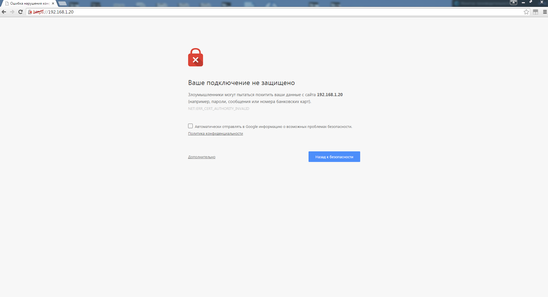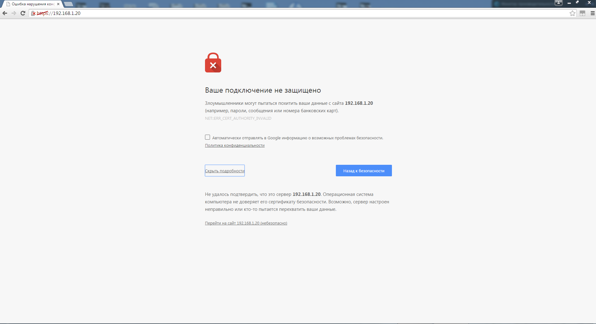Нажимаем на (дополнительно) и перейти на сайт (192.168.1.20) небезопасно.