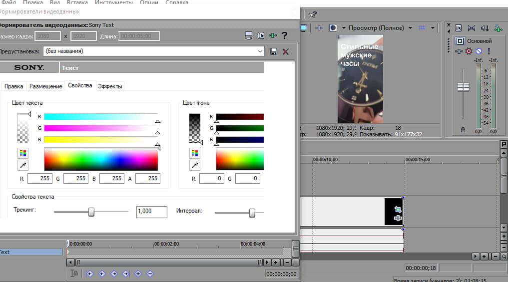 Цвет фона – прозрачный. Можно добавить один текст на всё видео