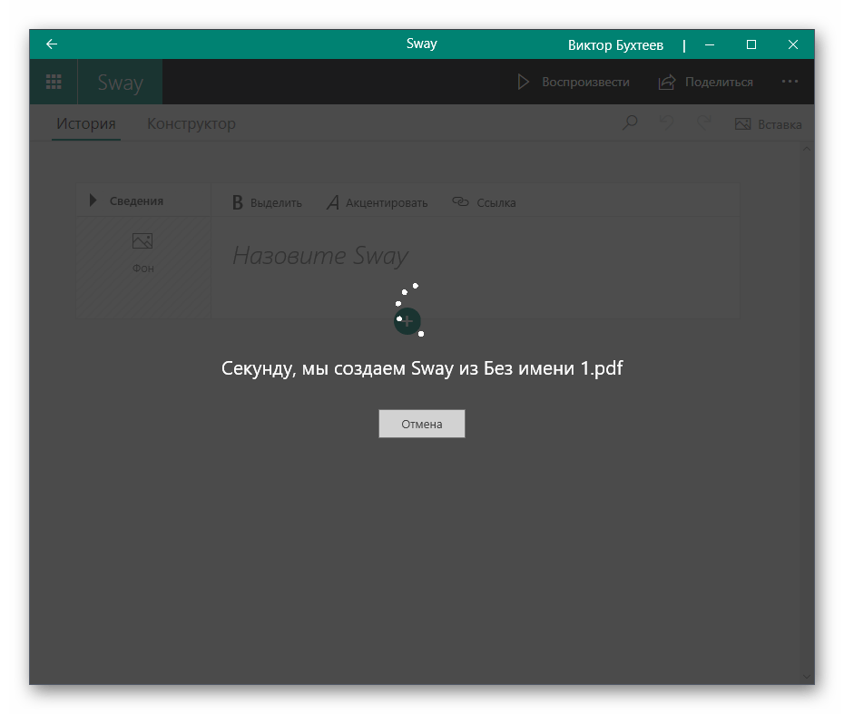 Ожидайте завершения преобразования документа в Sway, что займет буквально несколько минут.
