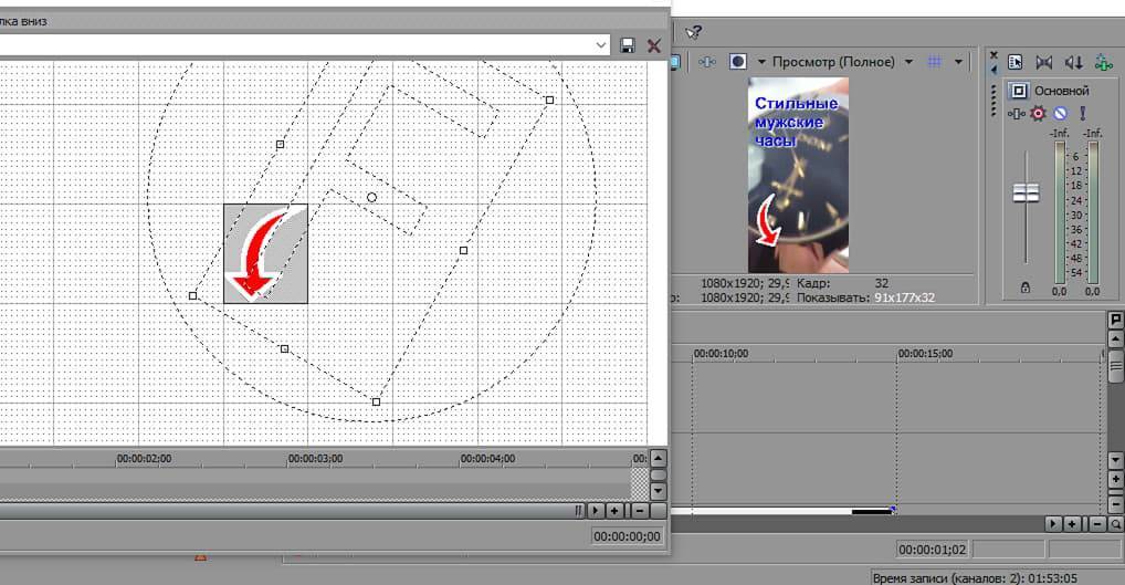 Создадим видеодорожку, добавим стрелочку (PNG формат).