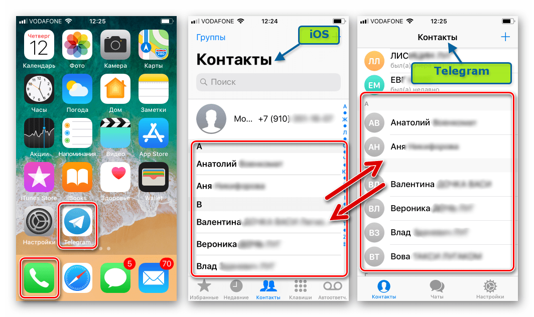 - Синхронизация с телефонной книгой. Для этого достаточно разрешить Телеграму использовать данные с устройства.