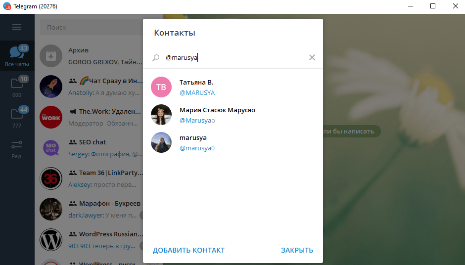 Так исторически сложилось, что компьютерная версия Telegram тоже обрела популярность среди его пользователей, особенно на операционной системе Windows. В примере инструкции рассмотрена 10-я версия «оконной» ОС. Добавление контакта на ПК имеет всего два способа, поскольку на нём технически не предусмотрена отправка СМС. Однако, эти способы наглядно проще.