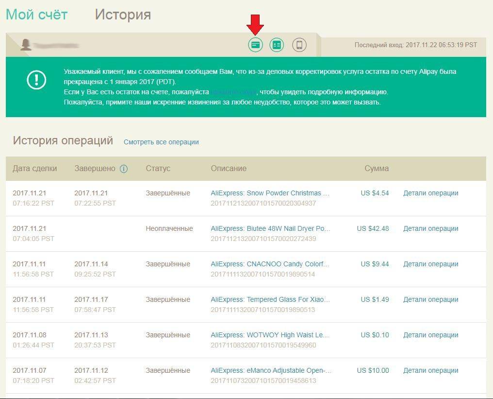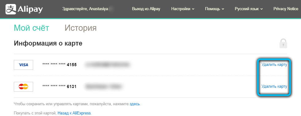 Удаляем данные карты с Алиэкспресс при помощи Alipay