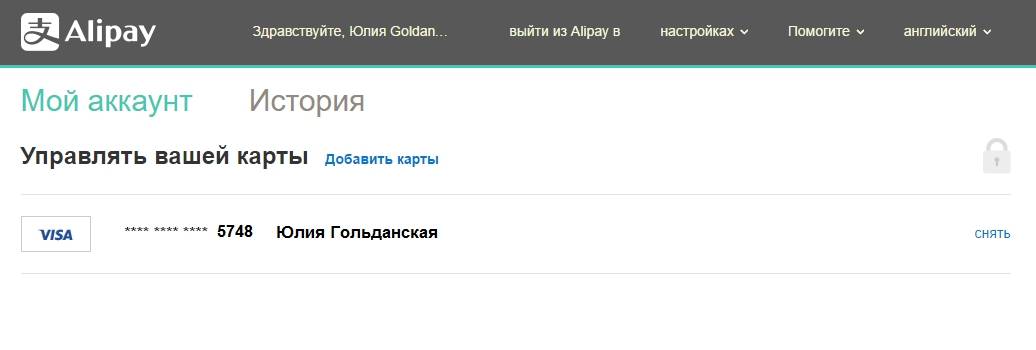 Но в любом случае чтобы карту отвязать и свои данные из торговой площадки удалить, нужно иметь личный аккаунт в системе Alipay. Для этого там нужно попросту зарегистрироваться. И тогда можно будет смело использовать все возможности. Зайдя в свой кабинет на алипей, пользователь сможет и прикрепить карту, и, соответственно, удалить ее. Все данные – номер, код, срок действия и пр. используются исключительно по назначению. Администрация партнерского сайта Alipay гарантирует целостность и сохранность всей указанной информации. Можно не беспокоиться ни о каких мошеннических действиях, так как в случае пропажи средств со счета алипей (а такого практически не бывает), администрация все финансы возвращает.
