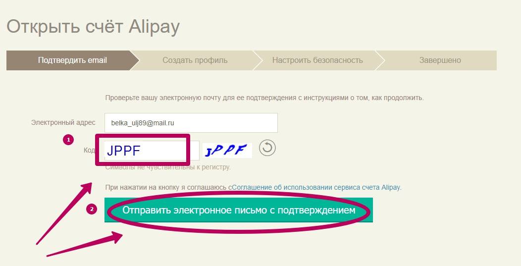 - Главное, следите за правильностью данных, спешка здесь не нужна. Проверьте несколько раз перед тем как кликнуть на зарегистрироваться. Вы увидите широкую кнопку, с помощью которой сможете открыть электронный кошелек Alipay и далее по той же схеме, которая описана выше.