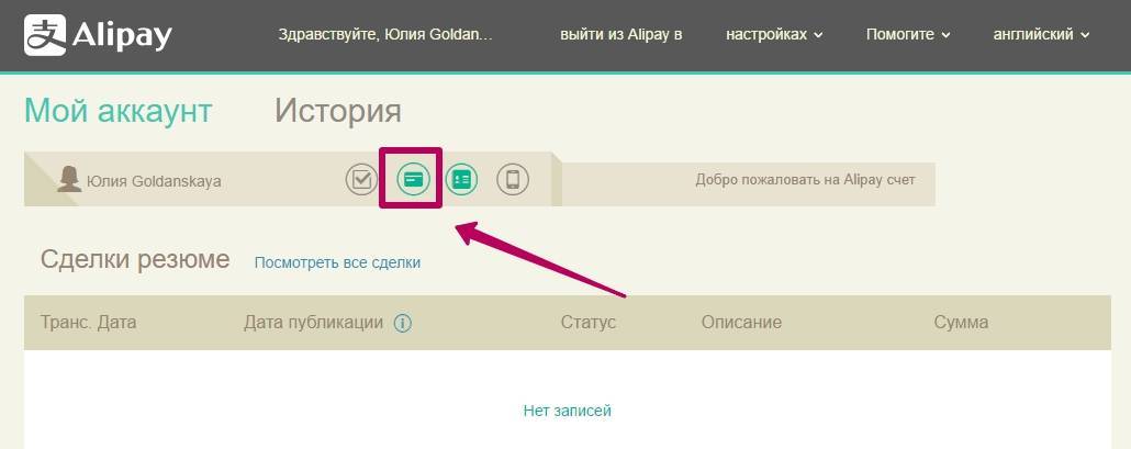 Для корректировки любой информации, необходимо перейти на сервис Alipay. Для этого нужно пройти процесс авторизации, открыть меню счета, где нужно выбрать подпункт редактирования карт. Если личного кабинета нет, то придется предварительно завести его.
