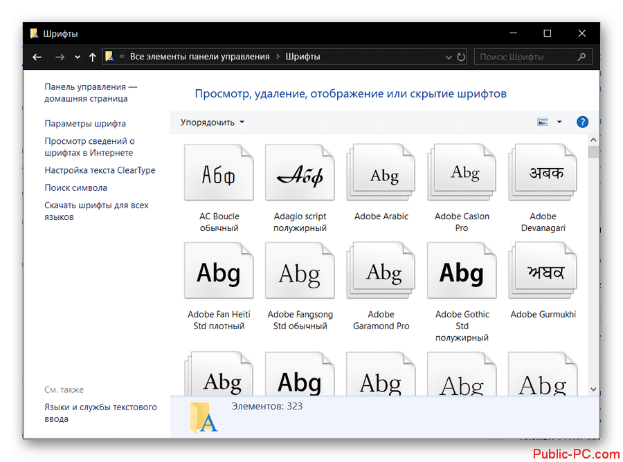 Windows 10 также позволяет управлять установленными шрифтами, включая предварительный просмотр, скрытие и удаление шрифтов.