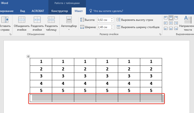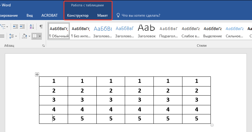 Выберите строку или ячейку в таблице и откройте вкладку Макет таблицы.