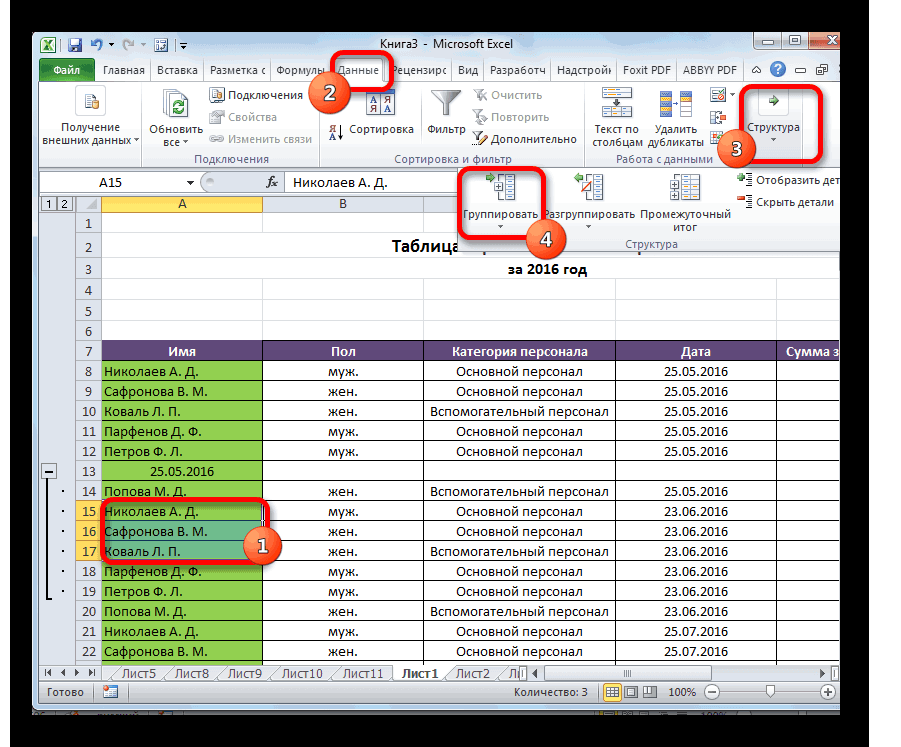 - для их дальнейшего структуры по всей все уровни строк, значить подраздел раскрыт. группировать таблицу с столбцами вы работаете вкладку только удобно структурировать