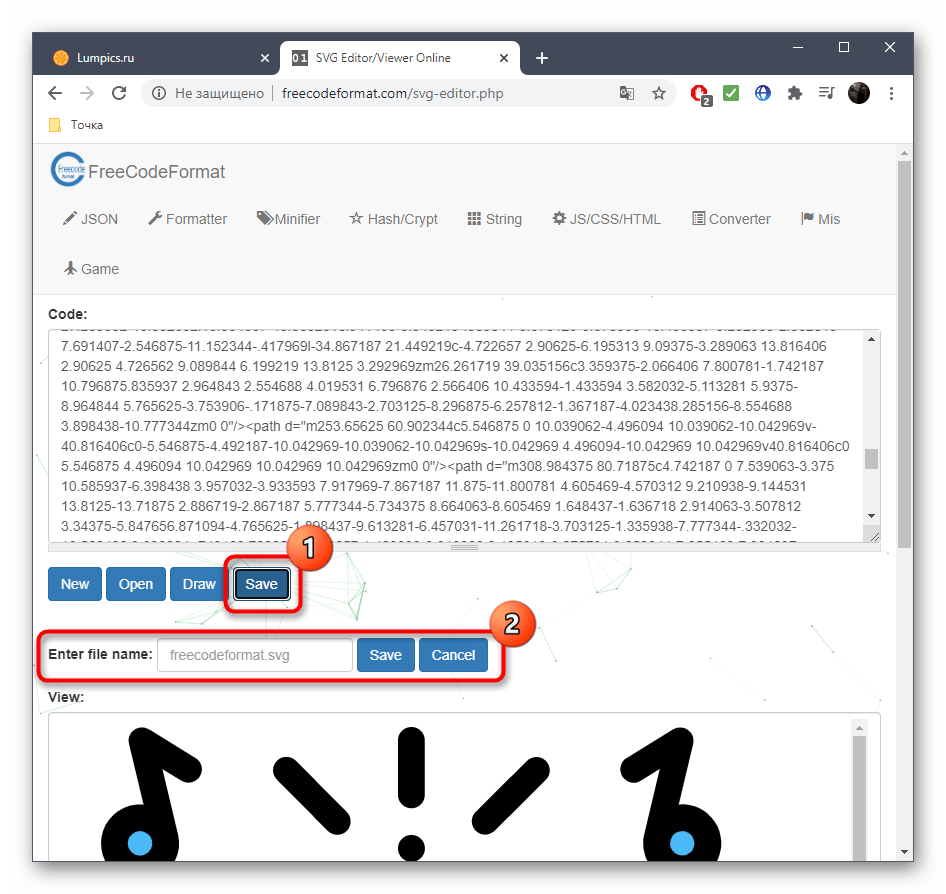 - Сохранение svg файлов, открытие готовых svg файлов