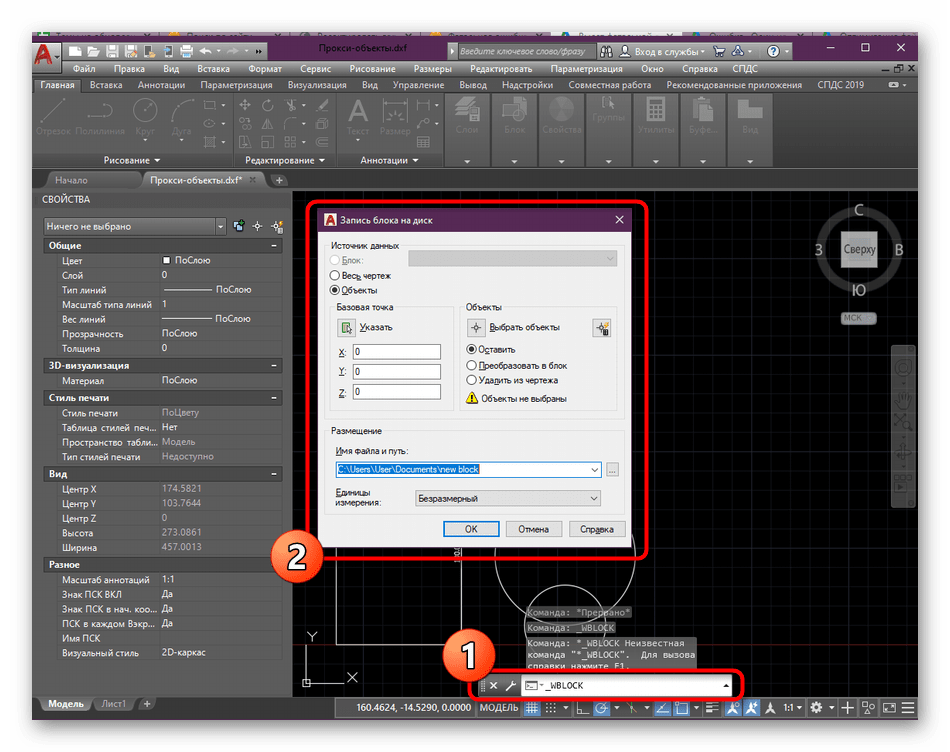 - Напишите в консоли команду _WBLOCK , а затем нажмите на Enter. В появившемся окне сохраните выбранные блоки.