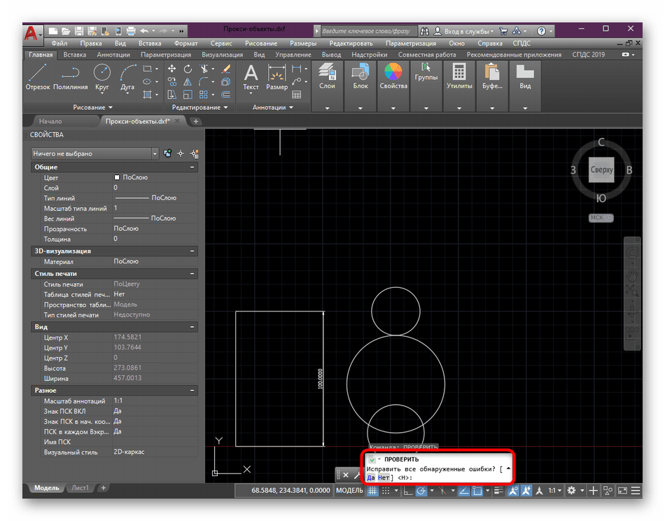 Если чертеж откроется, обязательно проверьте его на ошибки с помощью встроенной утилиты, о которой мы рассказывали в самом начале. После завершения проверки и исправления ошибок сохраните файл.