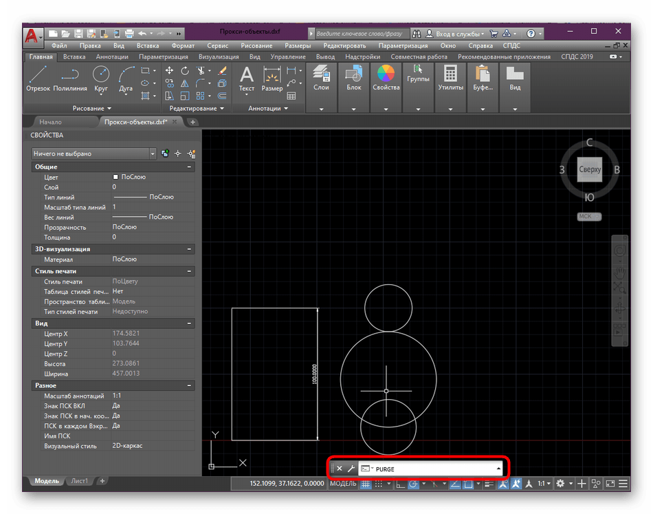 Сейчас необходимо попробовать проверить чертеж на наличие ошибок и восстановить его, поскольку во многих ситуациях именно небольшие системные сбои и провоцируют вылет программы при сохранении. От вас потребуется только воспользоваться системными консольными командами.