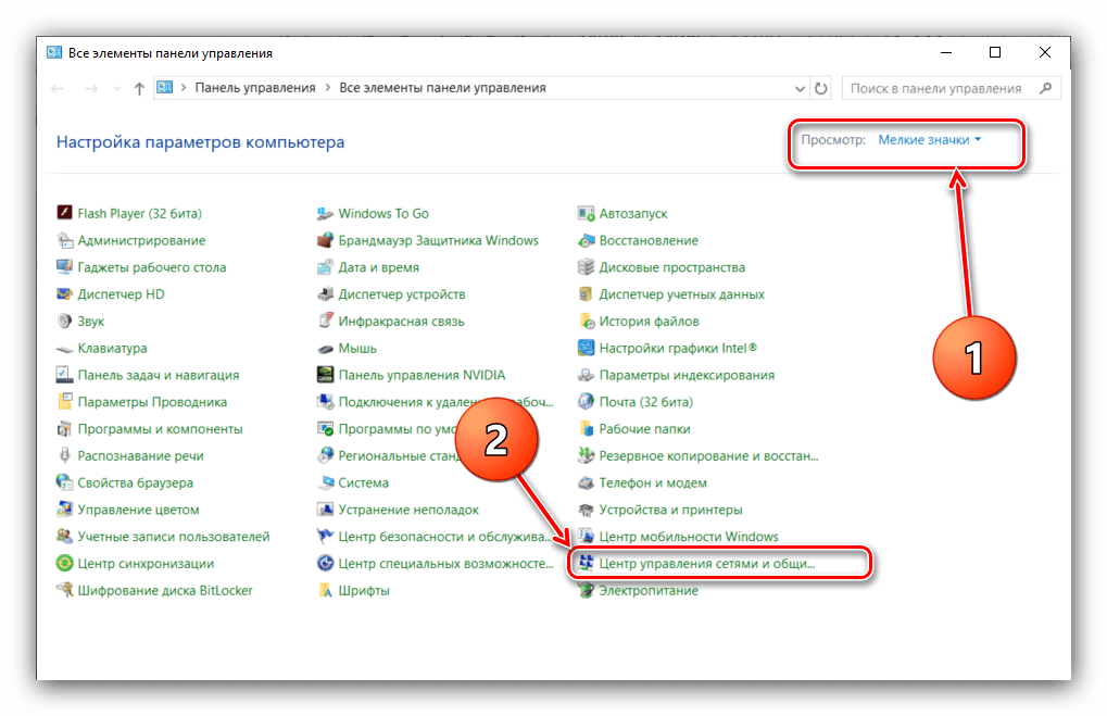 - В разделе Сеть и Интернет выберите Центр управления сетями и общим доступом .