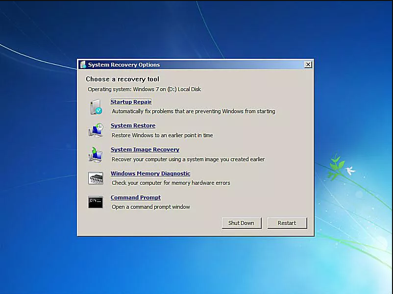 Расширенные параметры Windows RE (среда восстановления) можно использовать для исправления ошибок загрузки.