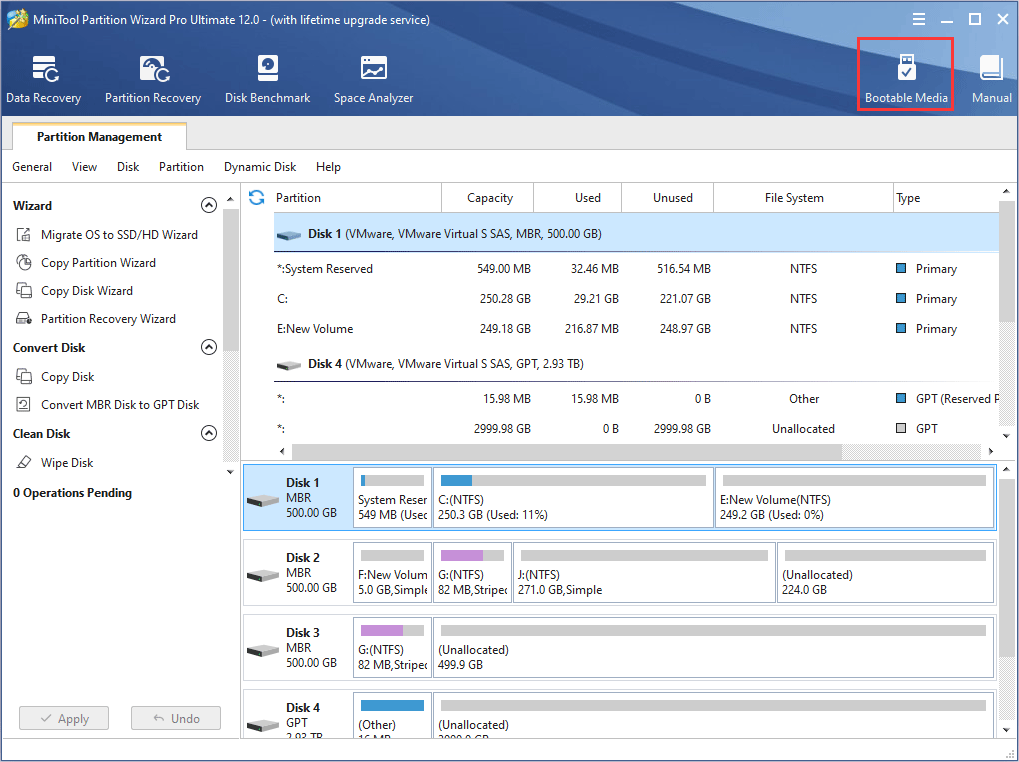 Step 1: Make a bootable disk of MiniTool Partition Wizard.