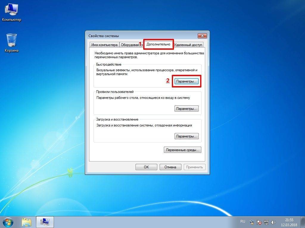 Появится «Свойства системы», здесь, нажмите на «Дополнительно», а затем «Параметры».