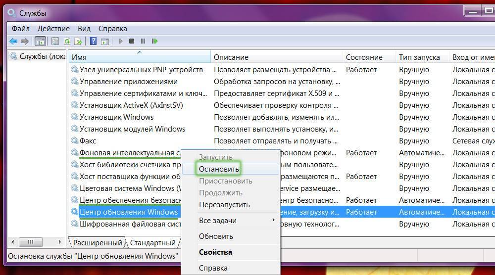 Если все было сделано верно, система сообщит вам о том, что WuAuServ остановлена.