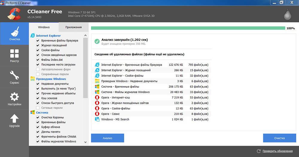 После этого перейдите во вкладку «Очистка» и нажмите кнопку «Очистить».