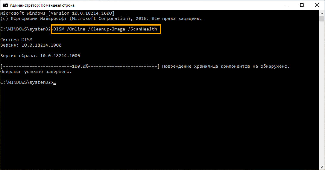 - Ввести путь: DISM /Online /Cleanup-Image /ScanHealth.
