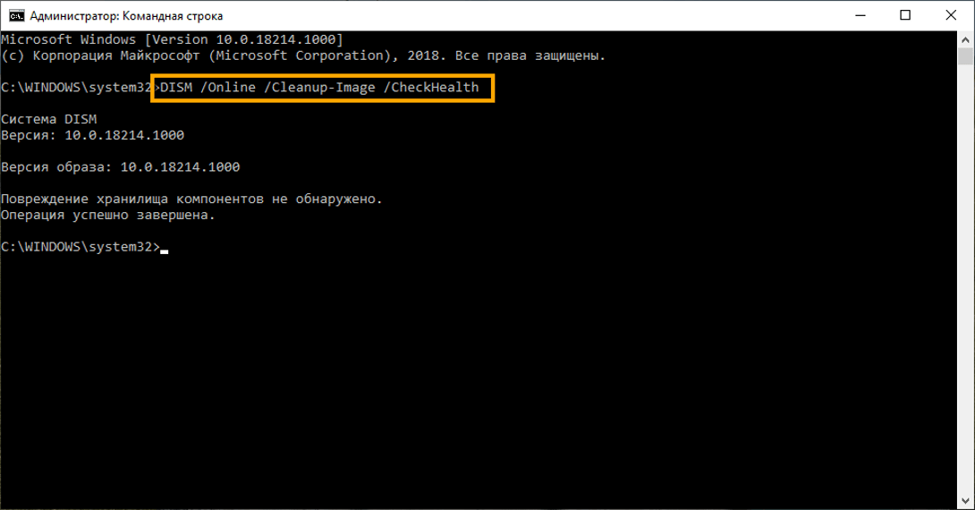 В Командной строке ввести: DISM /Online /Cleanup-Image /CheckHealth.
