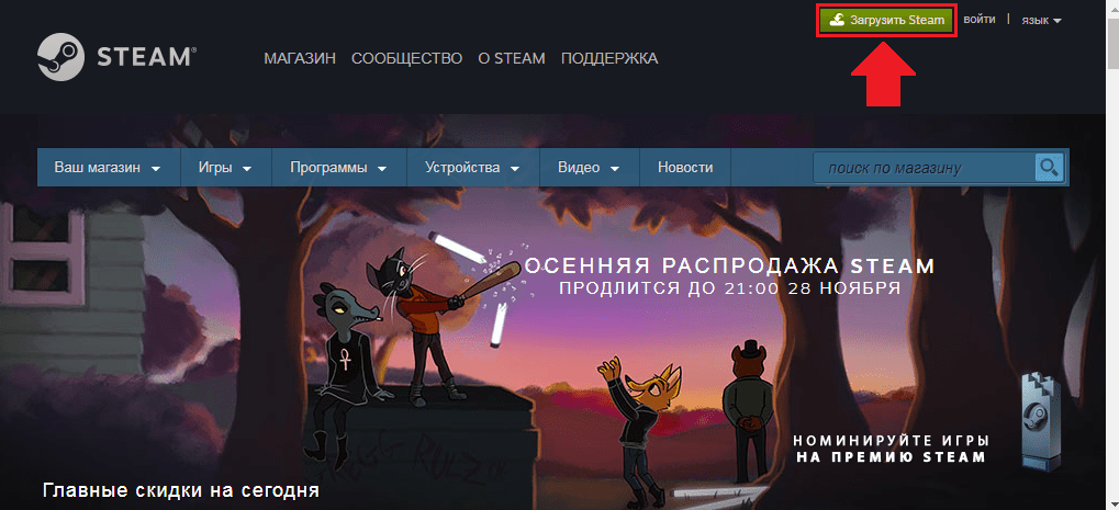 Для того, чтобы скачать и установить клиент Steam