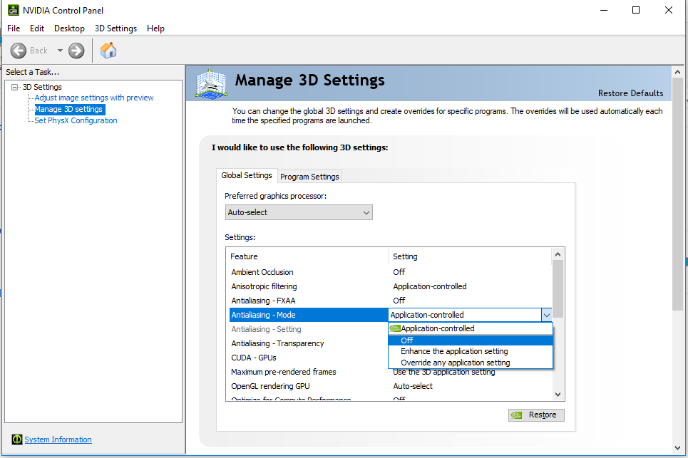 - Try to reduce all graphics settings to the minimum value. Once you are on the control panel of your graphics card, you can see various settings. Click on them and reduce it to see whether it fix your issue.