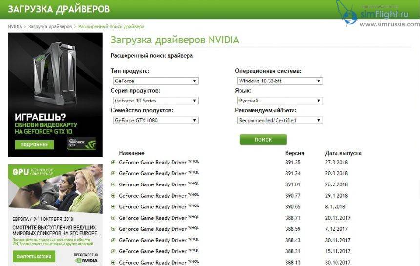 Да, вы не ослышались, мы будем устанавливать один из старых выпусков драйверов nVidia. Судя по отзывам пользователей наиболее стабильным является версия 384.76. Для загрузки архивного драйвера идем сюда и скачиваем нужный нам. Еще разок, сделайте это до удаления прошлой версии, ведь у нас же сейчас доступ к интернет отключен.