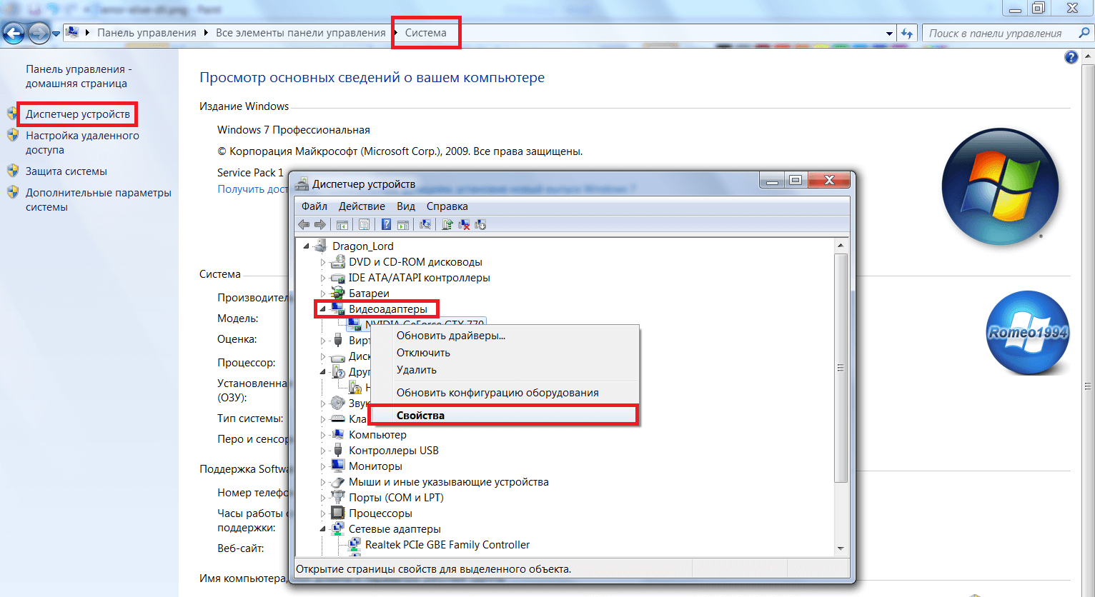 Может быть и наоборот: ошибка с xlive.dll появляется как раз после обновления драйвера. Тогда остаётся только вернуться к прошлой его версии. В Панели Управления нужно выбрать «Система», там «Диспетчер устройств», выбрать свою видеокарту и нажать «Свойства», кликнув правой кнопкой мыши.