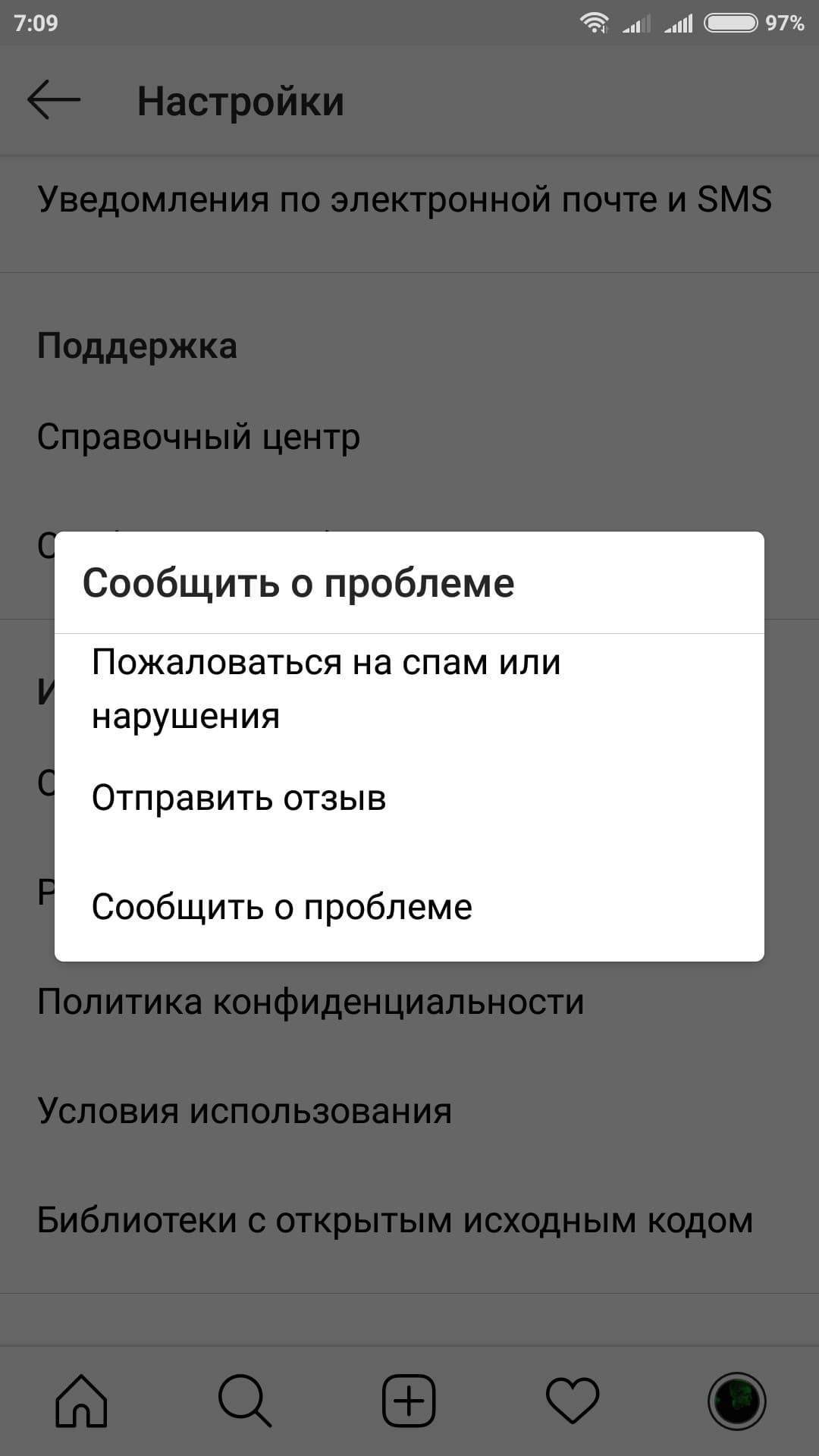 - Если Instagram не загружается при подключении через WiFi — перезайдите в профиль и обновите ленту.