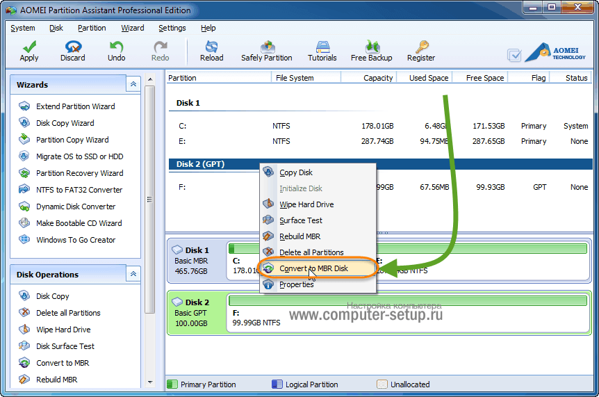 Рис. 6. «Преобразовать в MBR-диск» в Aomei Partition Assistant