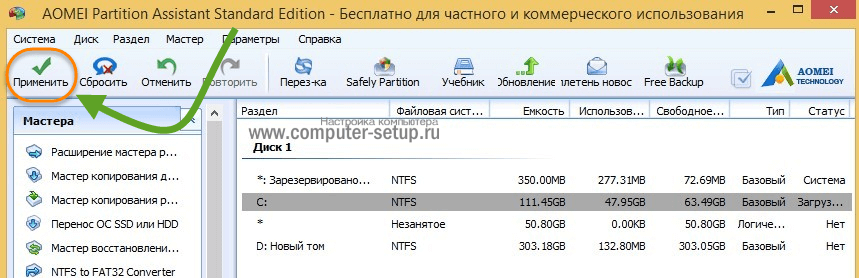 Рис. 8. «Применить» в Aomei Partition Assistant