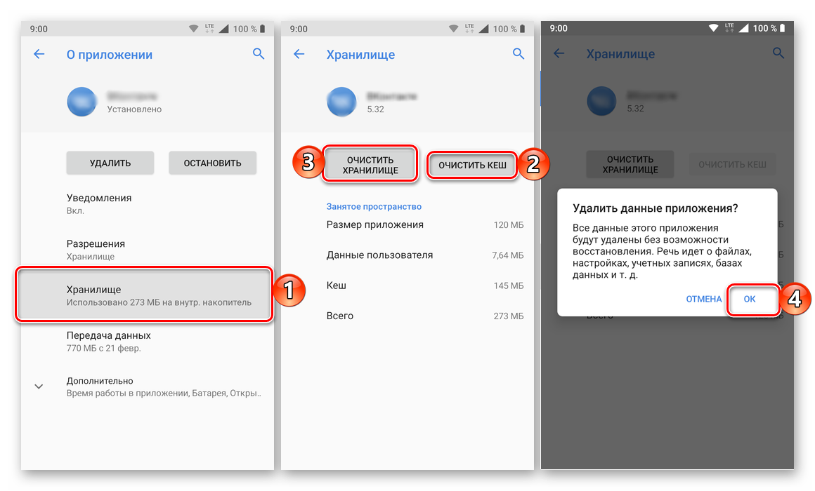Поочередно нажмите кнопки «Очистить кэш» и «Очистить данные».