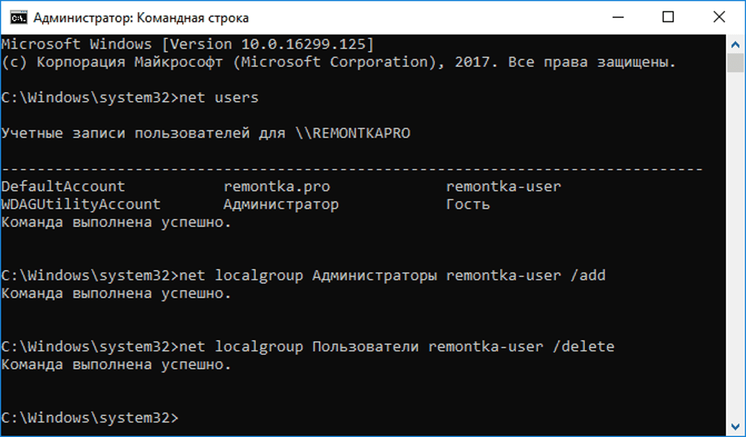 - Ввести значение: net localgroup Пользователи имя_пользователя /delete, кликнуть «Enter».
