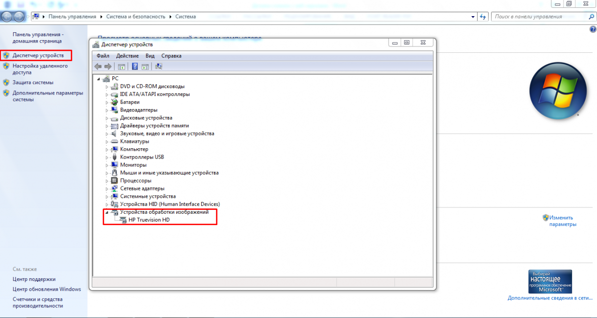 - в появившемся списке подключенных девайсов смотрим на Устройства обработки изображений