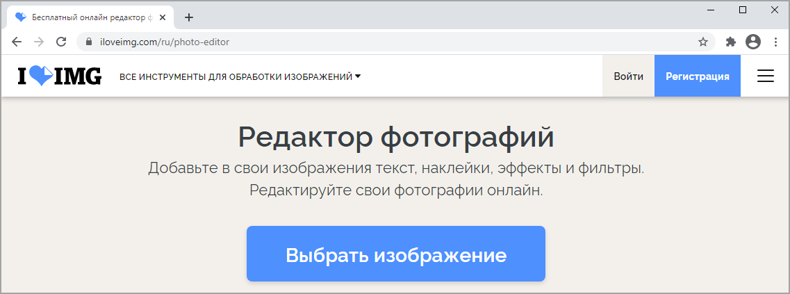 Адрес сервиса: iloveimg.com/ru/photo-editor