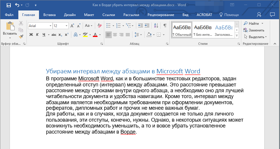 Метод, который мы рассмотрели выше, позволяет быстро переключаться между стандартными значениями интервалов между абзацами и их отсутствием (опять же, стандартным значением, установленным в Ворд по умолчанию). Если же вам нужно выполнить точную настройку этого расстояния, задать какое-то свое значение, чтобы оно, к примеру, было минимальным, но все же заметным, проделайте следующие действия: