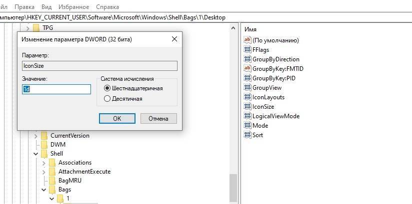 Для того чтобы сделать значки достаточно большими, в строке «Значение» нужно прописать цифру 100 и подтвердить кнопкой «ОК». Для стандартного отображения картинок требуется прописать 30. Если нужно меньше, выбирают значение ниже. Чтобы внесенные изменения активизировались на персональном устройстве, ПК требуется перезагрузить в принудительном порядке.