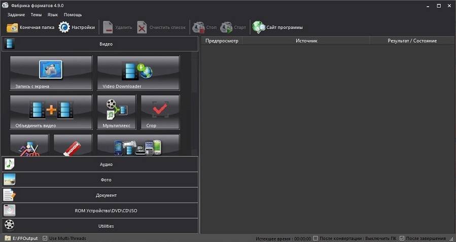 Format Factory совмещает в себе преобразователь видеоформатов, видеоредактор, аудиоредактор, рекордер монитора, граббер дисков и онлайн-загрузчик. Все это предоставляется совершенно бесплатно и даже без наложения водяных знаков. Еще одной особенностью софта является возможность восстанавливать испорченные медиафайлы.