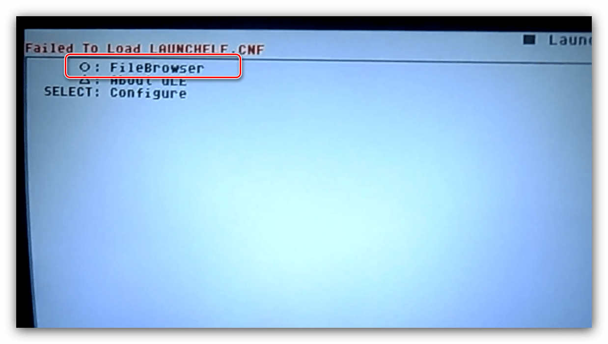 - Подождите, пока загрузится оболочка uLaunchELF, далее нажмите Круг для доступа к файловому браузеру.