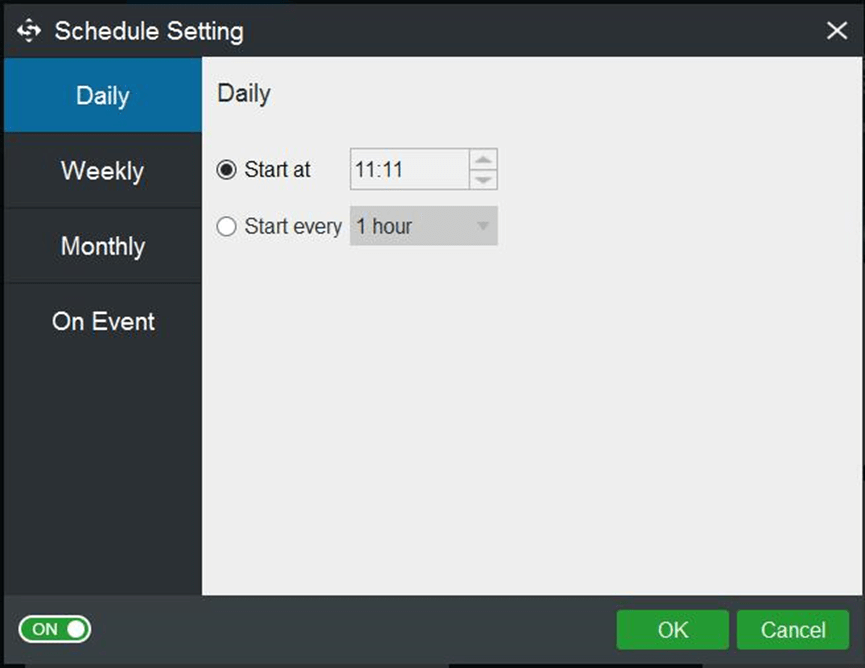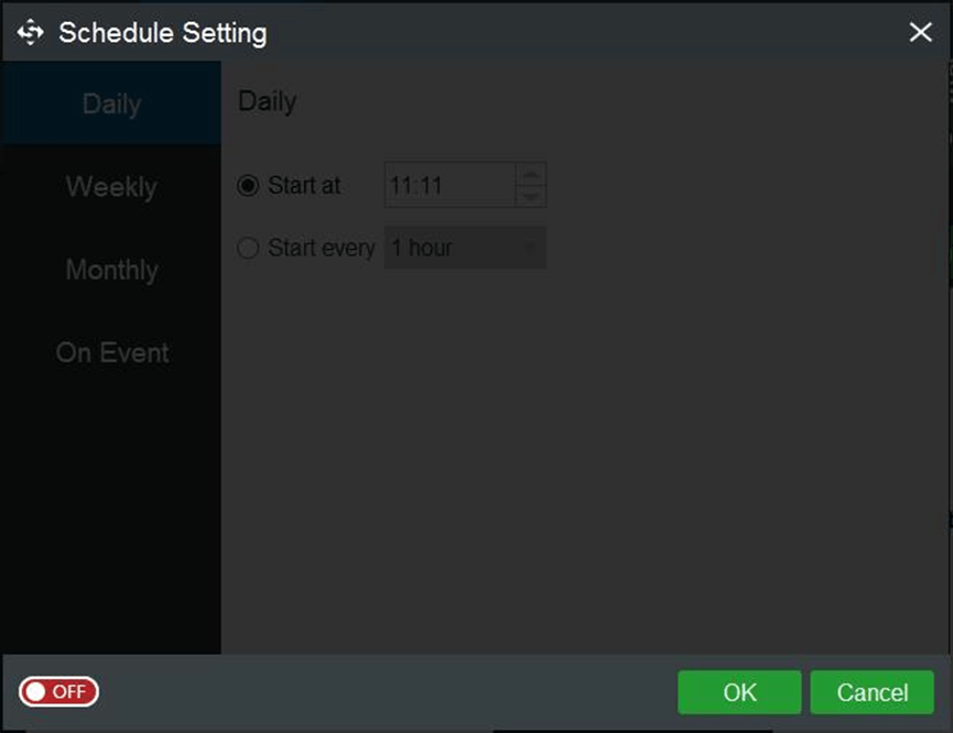 Мы также можем настроить автоматическое резервное копирование в График . Эта функция по умолчанию отключена, поэтому нам нужно сначала включить.