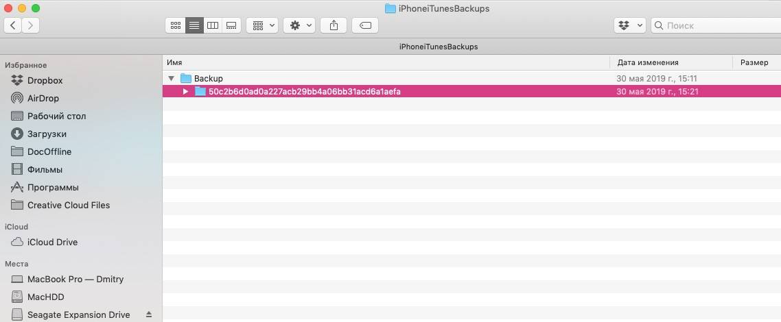 Шаг 9. Проверьте, что последняя резервная копия была сохранена именно на жесткий диск. Для этого посмотрите на дату последний модификации папки iPhoneiTunesBackups, или проверьте наличие новых каталогов в ней.